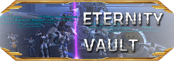 Delusions of Grandeur officially founded as a guild with the pre-launch guild formation system Bioware ran for several months prior to release. Other guild names under consideration at the time were Fearless and Inventive, Crimson Vanguard, Serenity, and Sith Happens (which we thought of FIRST (along with eleventybillion others)).