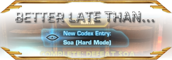 Sure, we could have done this months ago ... but we had better things to do than spend hours waiting for the pre-1.2 RNG to favor us with Soa's mechanics. So we farmed KP instead. Now that Soa is fixed, we took him down EZ-Style on hard, and almost had him on nightmare.